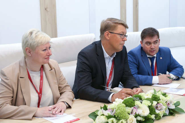 В рамках ПМЭФ заместитель председателя Правительства МО Вадим Хромов, президент ROCKWOOL Йенс Биргерссон и генеральный директор ROCKWOOL Россия Марина Потокер обсудили развитие предприятия на территории Московской области, дальнейшую реализацию совместных проектов в области устойчивого развития с использованием экспертизы ROCKWOOL в области экологичного производства.