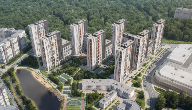 Еще один крупный жилой проект, в котором использовались алюминиевые профили ТАТПРОФ, – ЖК в Одинцово, спроектированный архитектурным бюро «Остоженка». Комплекс занимает обширный участок площадью 3,1 гектаров. На всех трех его корпусах установлены окна ТПТ-65.