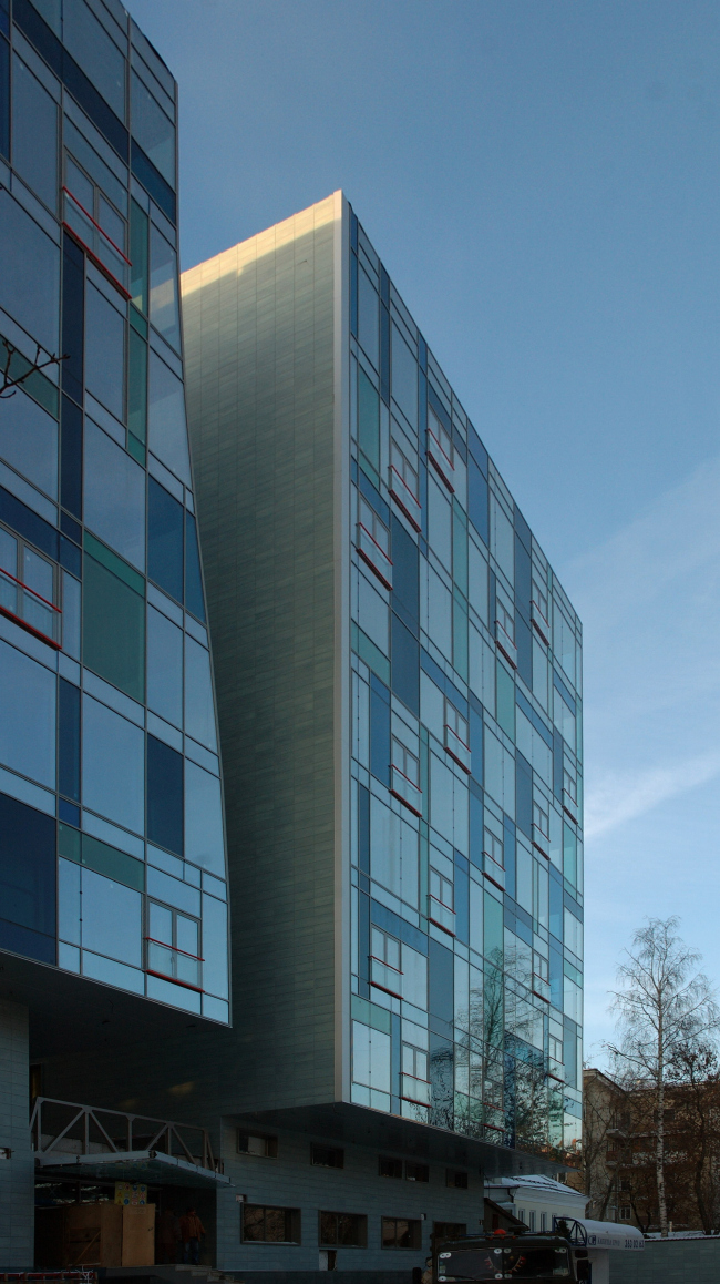 В Венеции первый раз представляется московская архитектурная школа, в которой ваше место исключительно… Вы знаете, я хотел отказаться от участия. Меня уговорил Алексей Добашин, заказчик бюро «Остоженка». Почему отказаться? Я не люблю коллективных действий. И потом – вот вы выставляете русскую архитектуру и противопоставляете ее иностранным архитекторам, которые работают в России. Скажите, ну вот бывает, скажем, французская архитектура? По-моему, нет. Бывает просто Жан Нувель, Кристиан Портзампарк, еще кто-то. Мне кажется, национальных архитектур больше не существует, они распались на индивидуальности. Такое деление – на наших и не наших – оно только в России может возникнуть. Оно может быть и есть, это противопоставление актуально и злободневно. Это мой рынок, на который они вторгаются. Но я думаю, что сама оппозиция «мы – не мы» – в этом есть какой-то провинциализм, слабость. Мы должны быть выше этого и не замечать, а вовсе не пытаться себя противопоставить им как национальную школу. Те двадцать архитекторов, которые составляют сегодня элиту Москвы, объединены явными общими принципами. Скорее проблематично определение индивидуального почерка каждого из них, а черты одной школы бросаются в глаза. И от вас особенно интересно слышать, что школы нет. Ведь вы, по сути, ее глава. И как бы вы определили эту школу? Средовой модернизм. И у школы есть ряд особенностей. Именно российских. Уважение к историческому контексту, не к памятникам, а к рядовой застройке, соединенное с уважением к современной западной архитектуре. Склонность искать некие правила, которым надо подчиняться. Архитекторы московской средовой школы не любят творческий жест сам по себе, он обязательно должен быть чем-то мотивирован – не только функцией, но духом места, какими-то несуществующими воспоминаниями. Архитектор говорит «я должен так сделать», а не «я хочу так сделать». При этом сравнительно слабая детерминированность прагматическими соображениями. То есть «я должен следовать местному морфотипу» всегда сильнее, чем «я должен получить столько-то квадратных метров». Высокая оценка сдержанности, воспитанности, умения быть незаметным. Вообще, это до определенной степени выражение программы позднесоветской интеллигенции в архитектуре. Жилой комплекс «Панорама» © АБ Остоженка