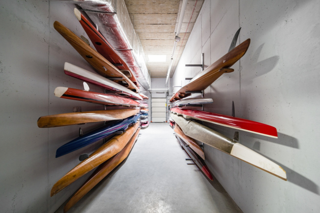 Помимо упомянутого ангара, в здании имеются раздевалки, тренажерный зал с видом на реку, помещение для собраний клуба, а также общественный туалет. Рядом с базой у воды построен небольшой эллинг для моторных лодок с двумя помостами и мини-трибунами, завершающимися смотровой площадкой.