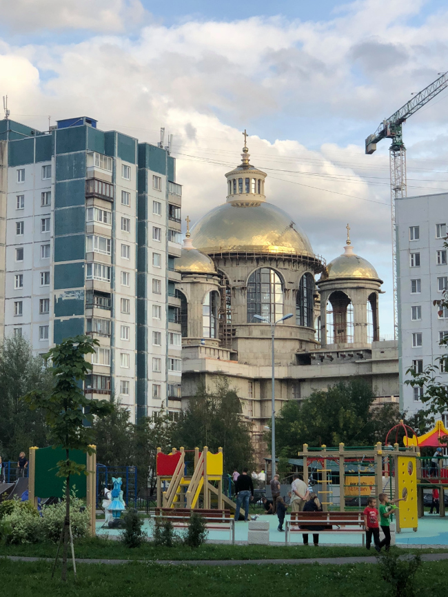 Для меня самым важным событием этого года в отечественной архитектуре, потрясением, можно сказать, стало возведение Духовского собора, который строит Максим Атаянц на той окраине города, где его и Петербургом язык не поворачивается назвать. Среди полинявшей безнадёги романовского* Ленинграда, на фоне чахлых деревцев местного «парка» и не менее безжизненных панельных «новостроек» возникают очертания от иных эпох, когда стремление к сложной гармонии, поиск совершенных пропорций, обращение к высшему, небесному, божественному составляло основу творчества большого архитектора.