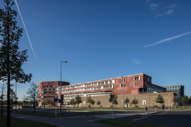 Национальная библиотека Люксембурга – проект с историей: Bolles+Wilson выиграли соответствующий архитектурный конкурс еще в 2003, но строительство началось лишь в 2014, на совсем другом участке. Это зона новой регулярной застройки на авеню Джона Ф. Кеннеди. То, что здание – компактного объема, связано как с небольшим участком, так и с желанием максимально использовать свойства термальной массы постройки.