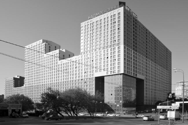 Архитекторы не могли не выделить важный угол этого дома, которым он встречает въезжающих по главной улице в эту часть города. Две арки и расположенный между ними красный десятиэтажный объем создают необходимый, по их мнению, акцент.