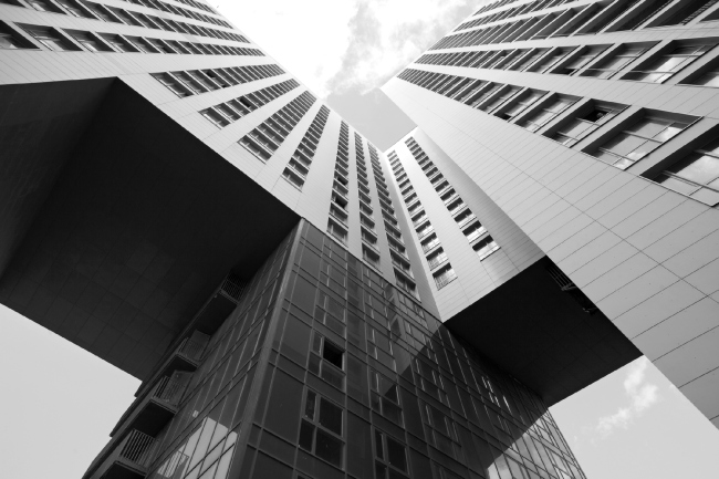 7.Жилой дом, первоначально проектировавшийся как два независимых асимметричных корпуса и позже, ближе к концу проектирования, «решивший» стать гигантской аркой, благодаря пентхаусу, соединившему их на верхнем уровне.