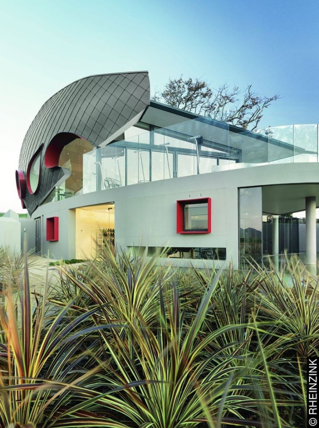 Уникальный геометрический фасад здания иллюстрирует универсальность того, что умелый мастер может создать, используя материал RHEINZINK. Материал с натуральной патиной оказался идеальным для этого необычного сооружения.