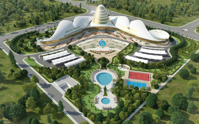 Необычной формы и декора здание, в котором органично соединятся современные тенденции градостроения и традиции национального зодчества, украсит северо-восточную часть города. По мнению специалистов, проект станет ещё одним архитектурным символом динамичного развития туркменской столицы.