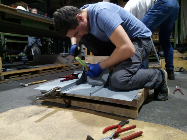 Участники освоили теоретический материал, включающий в себя информацию о свойствах, особенностях и вариантах материала RHEINZINK, о видах и элементах подконструкции кровли, об области применения и видах кровельных техник с применением титан-цинка RHEINZINK, а так же вопросы охраны труда и техники безопасности. Все полученные теоретические знания были участниками успешно применены на практике – каждый участник выполнил различные узлы из титан-цинка на макетах.
