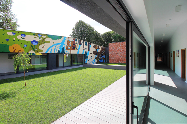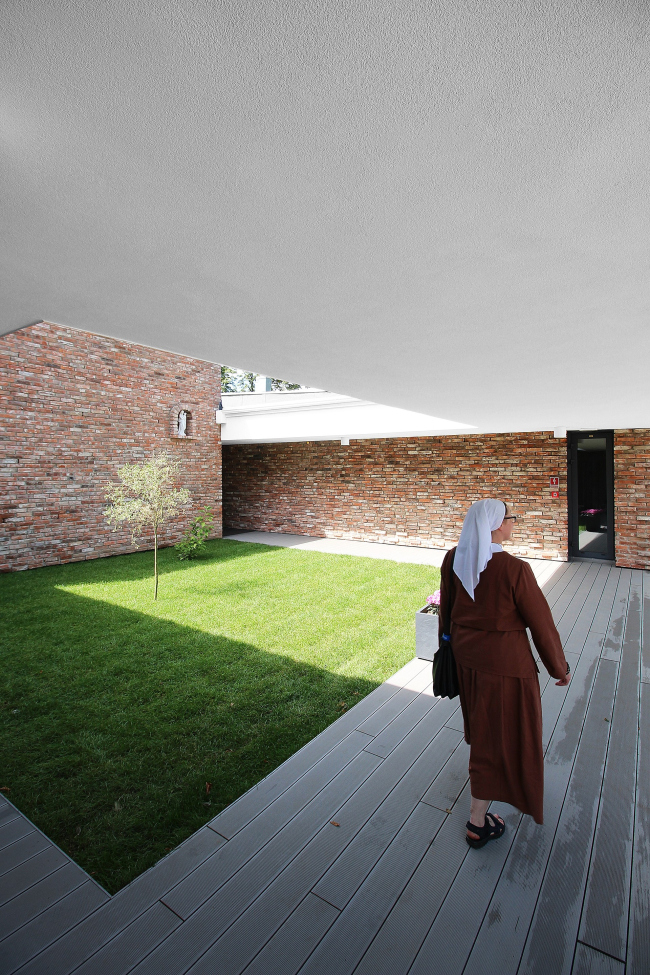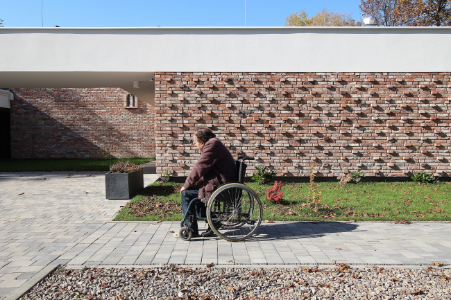 Из окон открываются идиллические виды, но не менее важен внутренний двор, создающий у обитателей ощущение защищенности. При этом его остекленные стены позволяют сотрудникам приюта следить за происходящим там: как поясняет сестра Хмелевская, ведь ее подопечные могут все. Кроме того, им всем нужен круглосуточный если не уход, то присмотр.