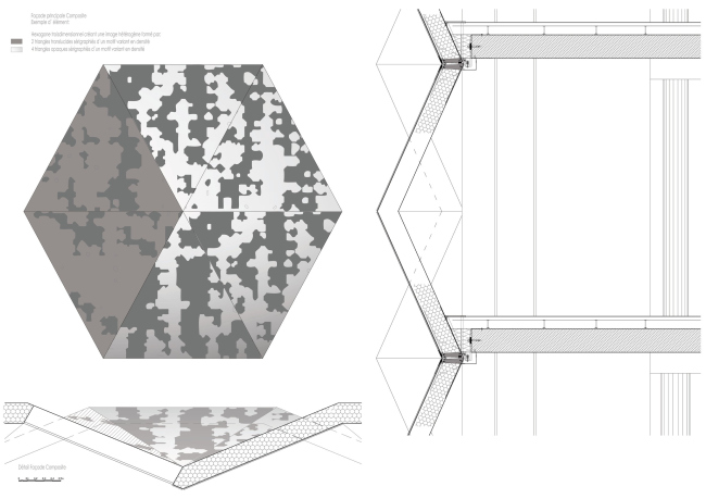Объемные панели изготовлены по кораблестроительной технологии с использованием нескольких слоев стеклопластика. Это позволило достичь высокого уровня изоляции и прочности, а также избежать необходимости в особом «уходе». Шелкография одновременно защищает интерьер от солнечного жара и не дает фасаду нагреваться. Учебный центр Люксембургского университетаФото © Guy Jallay