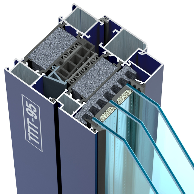 Повышенные энергосберегающие характеристики достигаются за счет специальных термомостов из стеклонаполненного полиамида толщиной 57 мм. Что, в свою очередь, позволяет применять конструкции ТПТ-95 в любых климатических зонах России. Примечательно, что в любых условиях даже при длительном эксплуатации они сохраняют свою геометрию и несущую способность, не деформируются под воздействием внешних факторов и перепада температур.