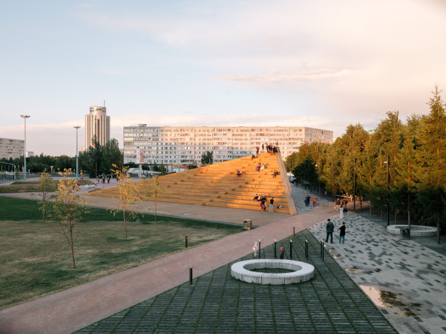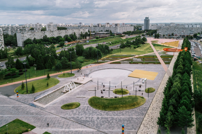 Из жесткого образца позднесоветского градостроительства, эспланады между так и оставшимся на бумаге музеем Ленина и Горсоветом, площадь Азатлык в Набережных Челнах благодаря проекту бюро DROM превратилась в привлекательное, многофункциональное и полицентричное общественное пространство.