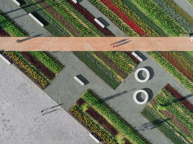 Для каждой из площадей мы разработали уникальный паттерн мощения, создали зоны для отдыха, защищенные от ветра и солнца зелеными холмами и деревьями различных местных пород.