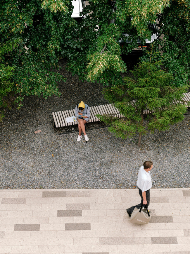 Применение местных материалов и трудовых ресурсов, внимательное отношение к переиспользованию позволили уменьшить негативное влияние на окружающую среду и сделать проект устойчивым, финансово реализуемым и связанным с контекстом. Мы с вниманием отнеслись к озеленению площади – увеличили площадь мягких поверхностей, сохранили практически все существующие деревья и добавили много новых.»Площадь АзатлыкФото © Дмитрий Чебаненко