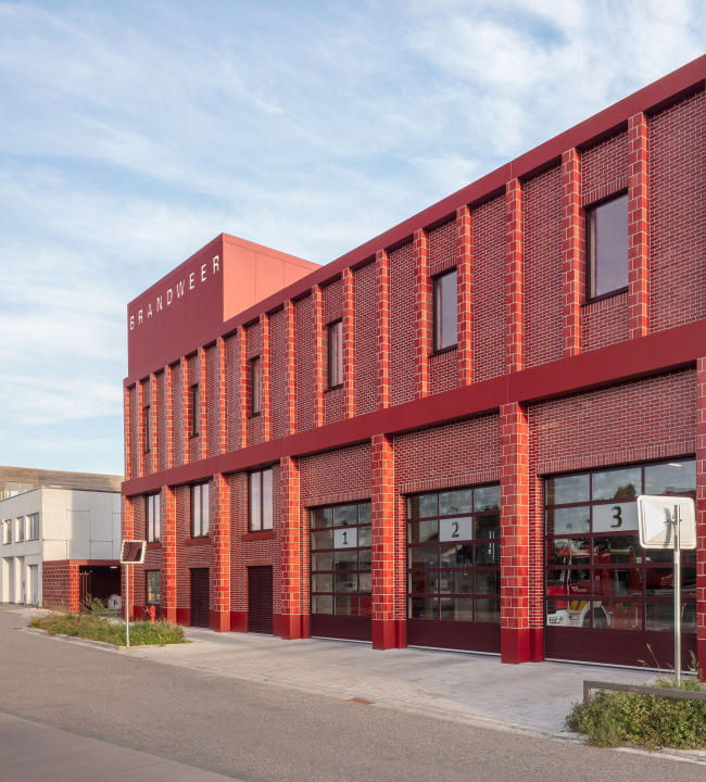 Пожарная часть в Антверпене по проекту бюро Happel Cornelisse Verhoeven фасадами из красного глазурованного кирпича сразу сообщает прохожему о своей важной функции.