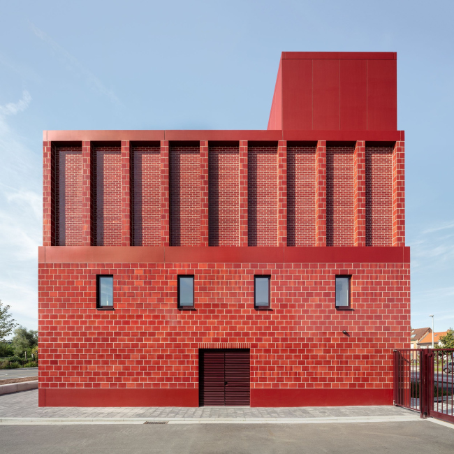 Роттердамскому бюро Happel Cornelisse Verhoeven интересна концепция «говорящей архитектуры» Леду и Булле, которую они воплощают в своих очень разных проектах. Пожарная часть на южной окраине Антверпена дала для этого особенно много возможностей. Она стоит на углу оживленной магистрали, вдали от исторической застройки. Поэтому авторы могли позволить себе энергичный жест: ярко-красное здание с небольшой башенкой сразу дает понять, что это пожарная часть – хотя есть и заметная вывеска, необходимая по бельгийским СНиПам.