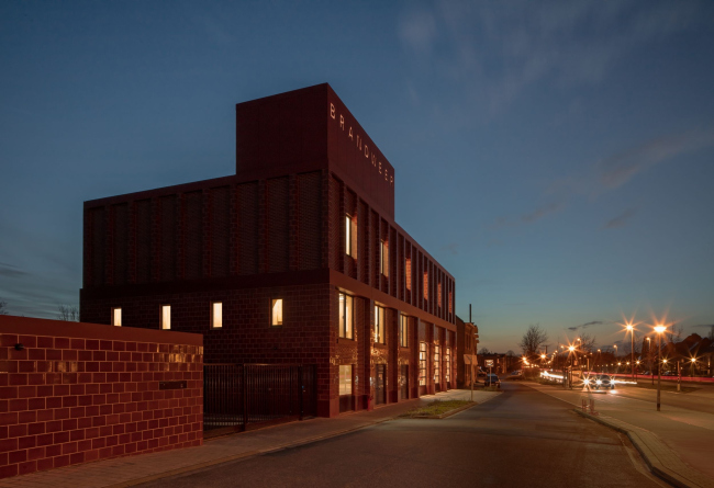 Цвет для фасада архитекторы впервые увидели в Лондоне – это была одна из старых кирпичных стен. А затем такой кирпич в двух форматах изготовили специально для пожарной части на одном из голландских заводов.