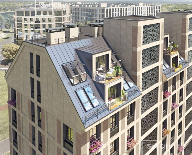 Для «Петровского квартала» бюро «Евгений Герасимов и партнеры» воспользовались окнами VELUX Cabrio, которые позволяют одним движением руки превратить мансарду в небольшую террасу.