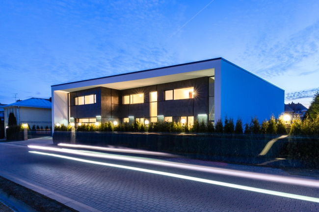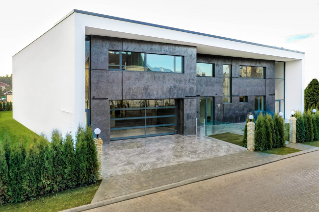 Несколько российских проектов участвуют в Baumit Life Challenge 2020. Одним из самых ярких претендентов стала работа московского архитектора Дмитрия Фимушкина в номинации «Индивидуальный жилой дом». » на Новой Риге отличается оригинальной архитектурой. Это яркий образец современного конструктивизма, сдержанный и стильный. Хрупкий стеклянный силуэт дома в мощной бетонной «броне» удивляет выраженным минимализмом и строгими цветами.
