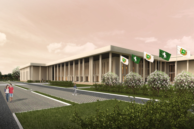Что касается архитектурного облика, то мы подумали, что здание должно отвечать своему названию – «Дворец спорта». Поэтому мы применили приемы из дворцовой архитектуры: колонны, вертикальное членение окон, приподнятая относительно земли на 1,35 м. входная группа. Проект своей монументальной стилистикой отсылает нас в советское прошлое, оставаясь современным прочтением Дворца спорта».