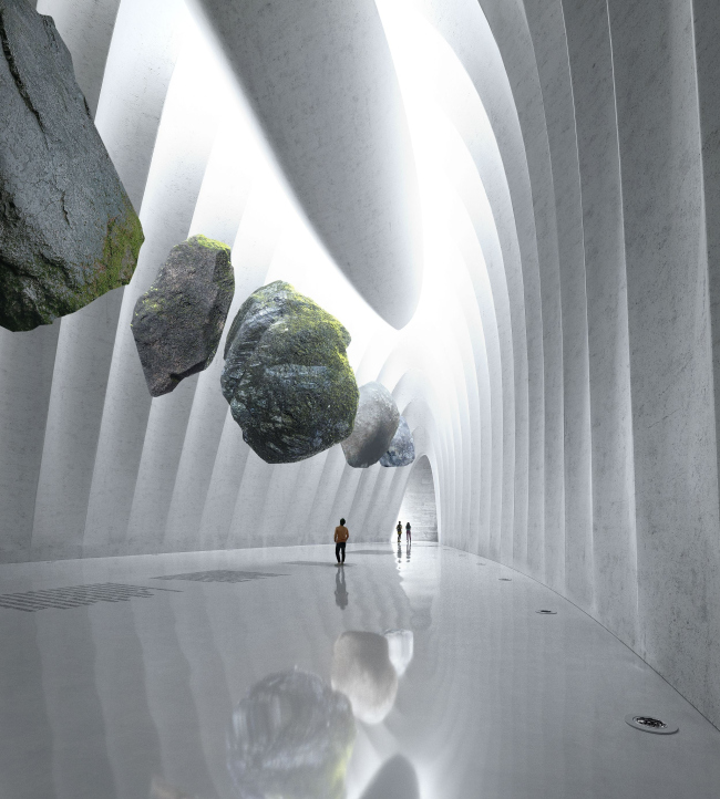 Но главное – это северный и южный «музеи», напоминающие валуны. Внутри находятся «специальные» выставочные залы с 30-метровыми перекрытиями, залитый светом сквозь окна и кровлю вестибюль, смотровая площадка, где можно проводить концерты.