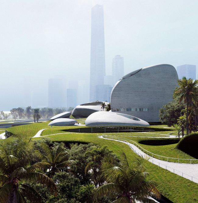 Шэньчжэнь – самый интересный мегаполис Китая в урбанистическом аспекте: он вырос за 40 лет от поселка до города с 12,5 млн жителей (агломерация – 23 млн) как «социалистический» близнец Гонконга, с которым он граничит, и продолжает бурно развиваться. Экономический успех наглядно воплощается не только в небоскребах, но и в крупных учреждениях культуры, поэтому власти несколько лет назад задумали сразу 10 таких новых объектов. Одним из них стал Парк культуры Шэньчжэньского залива, порученный бюро MAD. Он запланирован на берегу Южно-Китайского моря в районе Хоухай округа Наньшань, самого важного финансового и технологического центра в городе.