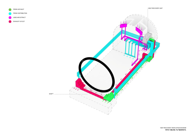 Все погреба рассчитаны на функционирование с открытыми дверьми, чтобы притягивать горожан и туристов на набережные. Для того, чтобы поддерживать внутри комфортную температуру, применены теплые полы, система кондиционирования с рекуперацией тепла, инфракрасные обогреватели. Все оборудование, включая розетки, держатели для развески произведений (при использовании погреба как галереи) и т.д. тщательно замаскировано.
