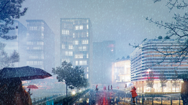 Мы изначально понимали, что по дизайн-коду школа должна быть смысловым и эмоциональным ядром кварталов, своеобразным образовательным храмом на площади. Мы придумали такой мягкий переход от архитектуры к природе, наш комплекс получился самым зеленым из предложенных концепций: он черпает свои компоненты из существующего контекста и становится связующим элементом, местом, где дети реализуют свой потенциал, центром притяжения для местных жителей.