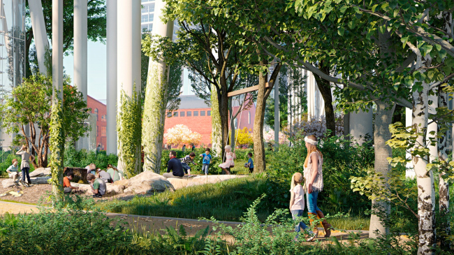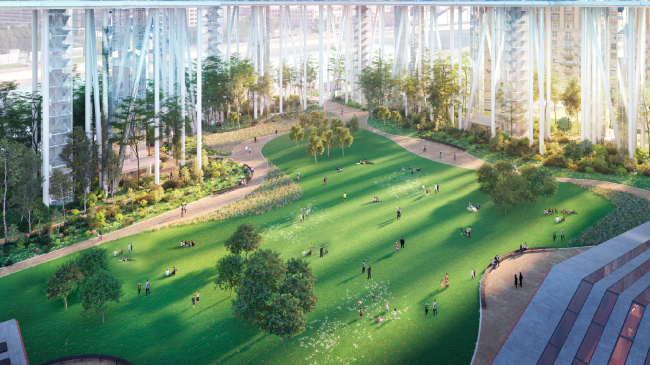 В связи с получением АГР были обнародованы новые рендеры проекта – они касаются в основном благоуйстроства общедоступного парка площадью 4 га, который планируется разместить на территории будущего ЖК, и общественных пространств в первых этажах зданий. Поскольку проект широко обсуждался и предшествующие визуализации были хорошо известны, новые картинки могут вызвать закономерный интерес.