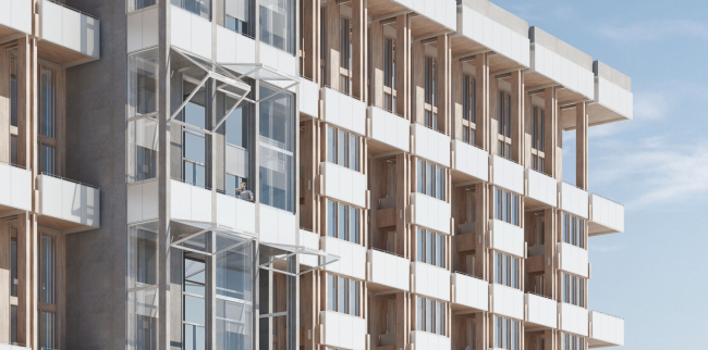Одна из интересных черт проекта – Даниил Царьков предлагает фасады из клееной древесины.