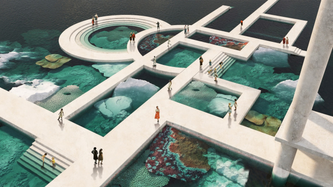 В программу кораллового здания входят музей, ресторан и гостиница. «Обрастая» известняком, платформа становится очень похожей на прибрежный или горный средиземноморский городок с лестницами и арками, а местами даже – на планету Татуин. Почти повсюду – арки и лестницы, почти отовсюду можно взглянуть на воду.