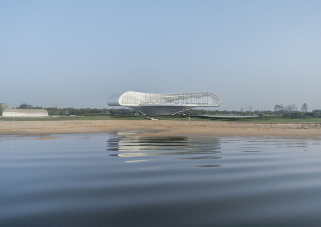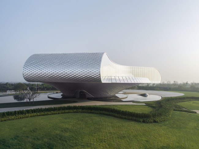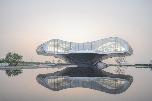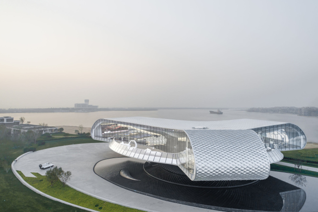 Волна на пике своего величия – примерно такое впечатление производит новый выставочный центр, построенный в Тяньцзине по проекту шанхайского бюро Lacime Architects. Здание площадью около 3500 м2 находится в самом сердце , в непосредственной близости от военно-морского музея и парка культуры, посвященного богине Мацзу. «Прекрасные географические условия делают [эту территорию] уникальным местом для выставок и впечатлений», – объясняют шанхайские архитекторы.