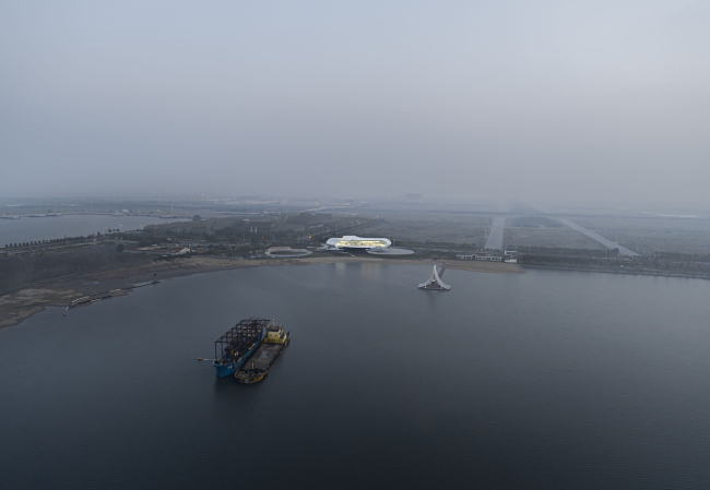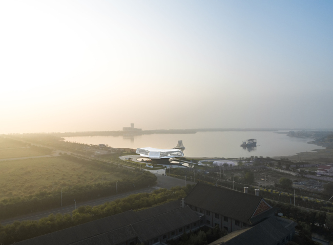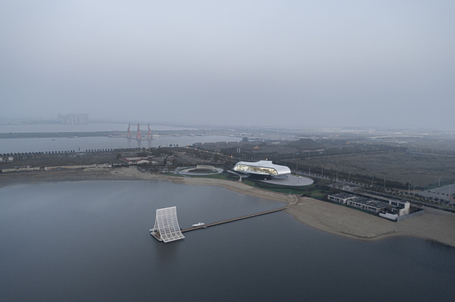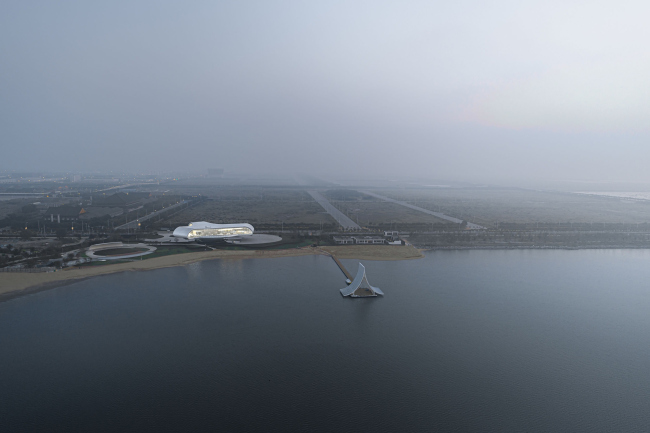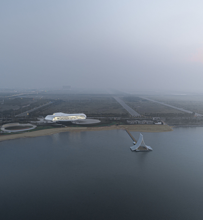 На создание «водного» сюжета архитекторов Lacime Architects вдохновила близость залива Бохайвань: музейный комплекс стал местом, где встречаются две стихии, море и земля. Отсылка к этому базовому для китайской культуры образу присутствует не только в объеме, но и в деталях интерьера, данных в различных «толкованиях»: в вестибюле посетителей встречает «водопад», глянцевый пол на третьем этаже напоминает гладь водоема – впечатление усиливают блики света, отражающиеся на поверхности потолка, – а панорамное окно высотой 8 метров «впускает» в это пространство настоящее море.