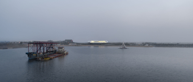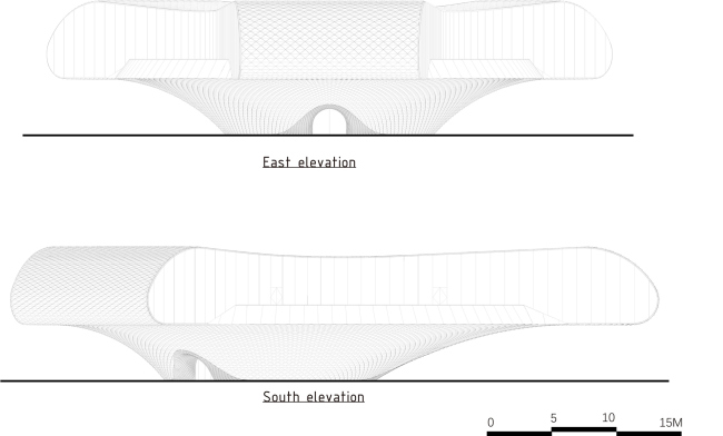 Общая площадь проектируемой территории составила 31500 м2: помимо трехэтажного музея-«волны» выставочную зону формирует театр под открытым небом и общественное пространство рядом с ним.
