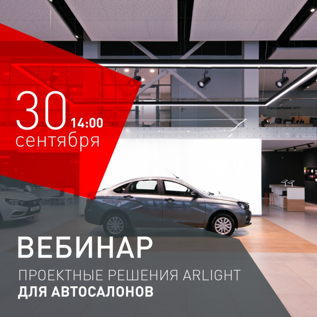 30 сентября в 14:00 приглашаем на вебинар: «Проектные решения Arlight для автосалонов»