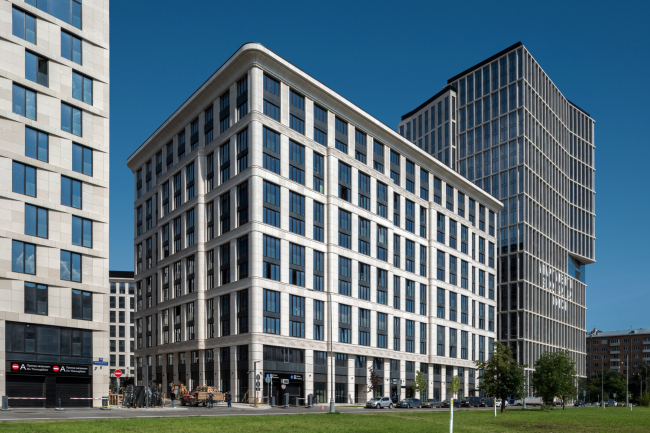 Заметим, что развитая здесь тема созучна более глобальному диалогу, происходящему в городе: Москва представляет собой конгломерат зданий-представителей классики и модернизма, «сталинской» репрезентации и модернистских высказываний, перемешанный иногда случайно, иногда намеренно. Иногда они индифферентны друг к другу, чаще спорят. Здесь же, на перекрестке при Динамо, разговор получился иным, отрегулированным и толерантным – таким специальным парламентом, где никто никого не перебивает, как будто задача – показать пример. Одновременно удается сформировать пресловутый комфортный город, достаточно крупный, чтобы он соответствовал интересам девелопмента, но не чрезмерный и сопоставимый по масштабу с соседними улицами.