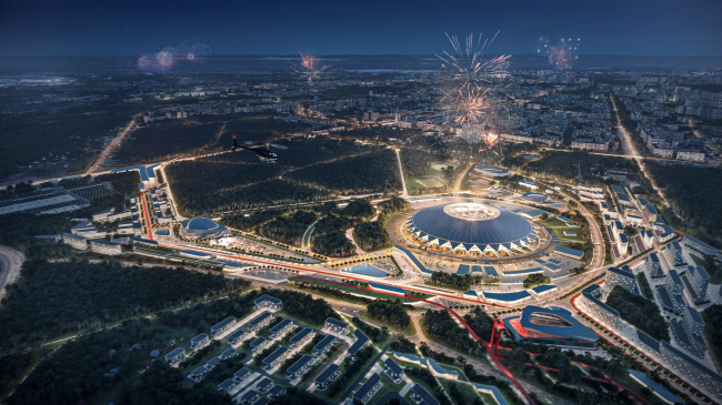 Экология, развлечения и экономика представлены на мастер-плане территории тремя кластерами. Первый – масштабный парк мирового уровня. Второй включает в себя собственно арену и другие спортивные объекты, автокинотеатр, ипподром, площадки для семейного отдыха. А в экономическом кластере – центральная площадь, конгресс-центр, театр мюзикла, медицинские учреждения, арт-деревня, жилые кварталы и школа.