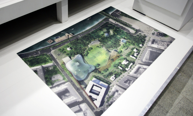 Сюжет стенда таков: взята территория, ППТ для которой разработан Институтом Генплана Москвы и уже утвержден – район Метрогородок. Эту территорию в порядке эксперимента дали четырем командам: АБТБ, CITIZENSTUDIO, AI Architects и SAGA – они разработали альтернативные предложения с разной степенью нарушения норм, которые, таким образом, предлагается поставить под сомнение. Степень оппонирования нормативам наглядно показана на решетчатом стенде, который «набран» из кубиков как конструктор. Зеленое – норма в проекте соблюдена, красное – нарушена.