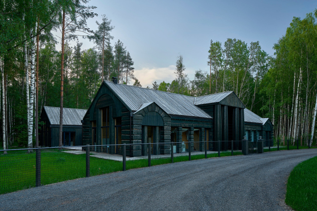 Павильон построен в составе усадьбы, главный дом которой вошел в шорт-лист в номинации Дерево в отделке. Как пояснил Александр Купцов, это не одна усадьба, а несколько, строительство идет уже лет 7 и еще, по-видимому, будет продолжаться столько же. Да и в подвале павильона – легкого, чистой формы, и насквозь прозрачного – теперь уже хранятся не охотничьи трофеи, и вино.