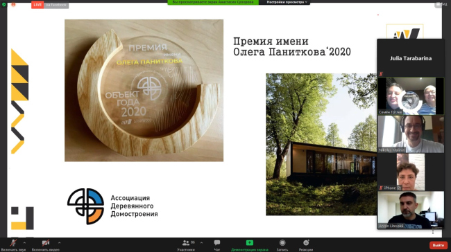 Вручение премии АрхиWOOD 2020 в формате zoom-конференции. Выступает Надежда Снигирева / скриншот