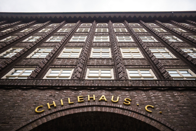 Этот огромный дом – первый небоскреб Гамбурга при высоте 42 метра, а при общей площади в 36 000 м2 – едва ли не крупнейшее здание Германии своего времени – выглядит от земли до конька крыши совершенно рукотворным и живым. Его фасады одновременно напоминают роскошный занавес и ювелирную филигрань. Тепло и энергию клинкера подчеркивает керамический декор работы Рихарда Куоля и его мастерской. Самые главные из их произведений – андский кондор, геральдическая птица Чили, на «носу» Чилихауса как у настоящего корабля, и небольшие ажурные павильоны по сторонам от этого угла – как будто вспененные волны, которые он рассекает (там сейчас открыт ресторан с говорящим названием The Brick, поэтому любой желающий может зайти внутрь).