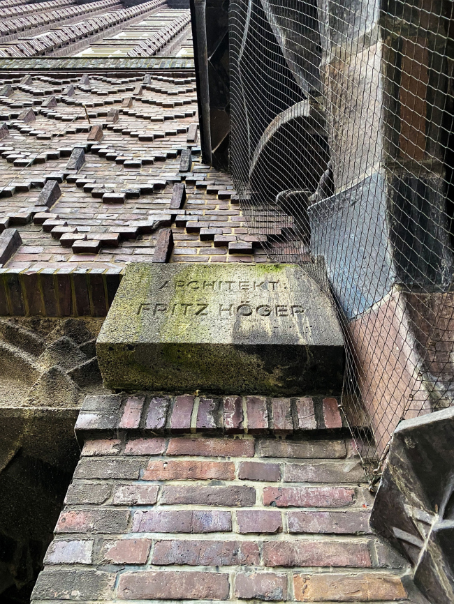 Хёгер ценил северонемецкий кирпич невероятно высоко как раз за его разнообразие цвета и фактуры, чувственную тактильность. Архитектор считал, что из него через три поколения удастся построить на месте Гамбурга «большой ганзейский город будущего», но пока важно это кирпич рассматривать, гладить и трогать, пока его не поймешь и не полюбишь. Именно клинкер придает, считал автор Чилихауса, этому огромному зданию одновременно и окрыленность, и силу тяжести.