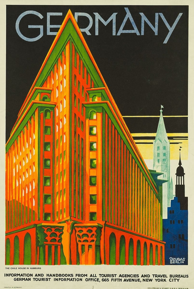 Но Чилихаус прославился и сам: сенсационные фотографии «с носа» быстро разлетелись по миру, и его одновременно стройный и четкий, энергичный и живой облик вдохновил художников и поэтов. Он даже стал главным героем рекламного плаката, изданного управлением по туризму Германии – наравне со знаменитыми соборами и дворцами. Это было в 1920-е, а в наши дни Чилихаус по-прежнему вмещает множество фирм и учреждений, но также входит в список Всемирного наследия ЮНЕСКО и в хрестоматии по архитектуре, а главное – по-прежнему поражает воображение, причем его необычный клинкер совершенно не потерял своей выразительности за прошедшие почти сто лет. Местные жители называют Чилихаус самым красивым кирпичным зданием в мире – кажется, они совершенно правы.
