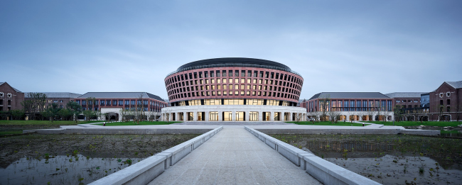 Международный кампус Чжэцзянского университета недалеко от Шанхая выражает свою интернациональную направленность с помощью «неоклассической» стилистики.