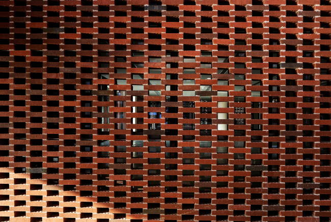 Широко использован красный кирпич, который выбран за его эффектный вид и на солнце, и в дождь, а также светлый песчаник.Международный кампус Чжэцзянского университетаФото © Zhao Qiang