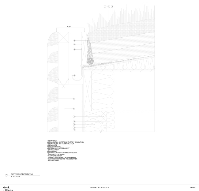 Дом на высоте 943 метров над уровнем моря супруги Морк-Ульнес построили для себя и своей семьи. Пара всерьез увлекается лыжами, а с уступа, на котором расположена «хижина», за несколько минут можно добраться до любой из трасс Квитфьеля – горнолыжного курорта, построенного специально к Олимпийским играм 1994. Каспер и Лесли Морк-Ульнес называют свой загородный дом «лабораторией»: в проекте Skigard Hytte им удалось воплотить идеи, не нашедшие отклика у сторонних заказчиков за все 15 лет существования их бюро Mork-Ulnes Architects. Так, практически все компоненты здания выполнены из дерева: несущие конструкции, напольные и настенные покрытия – даже в таких «спорных» помещениях, как санузлы, – а также мебель и фурнитура.
