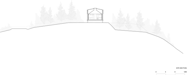 Конструкцию держат 45 тонких полутораметровых колонн-свай из клееной древесины. Отказавшись от бетонного фундамента, архитекторы смогли сохранить и природную среду, и тропинку, по которой овцы, живущие вблизи участка, спускались на пастбище, расположенное у подножья горы. Теперь в образовавшемся под домом пространстве животные прячутся от непогоды.