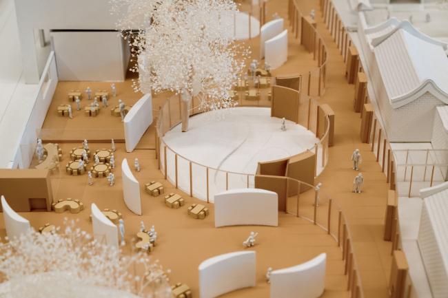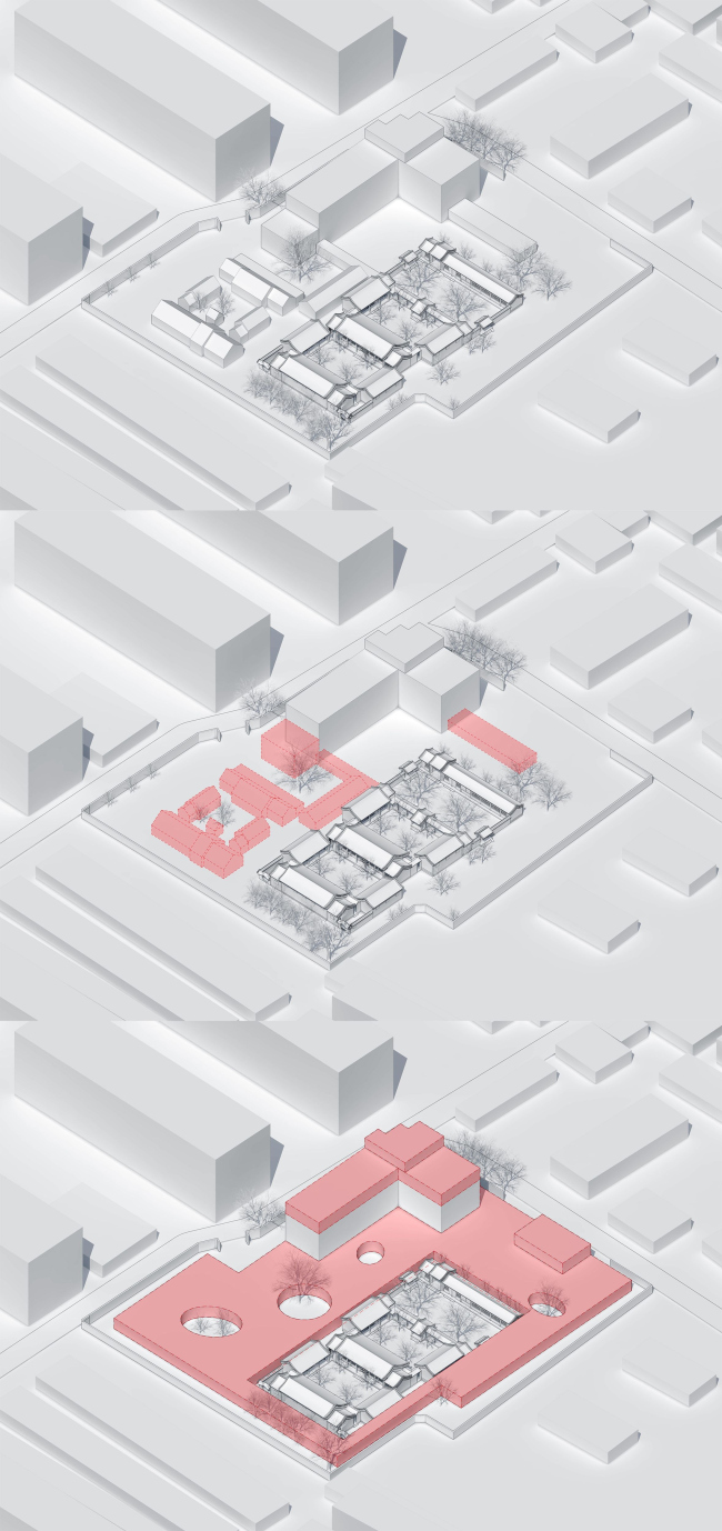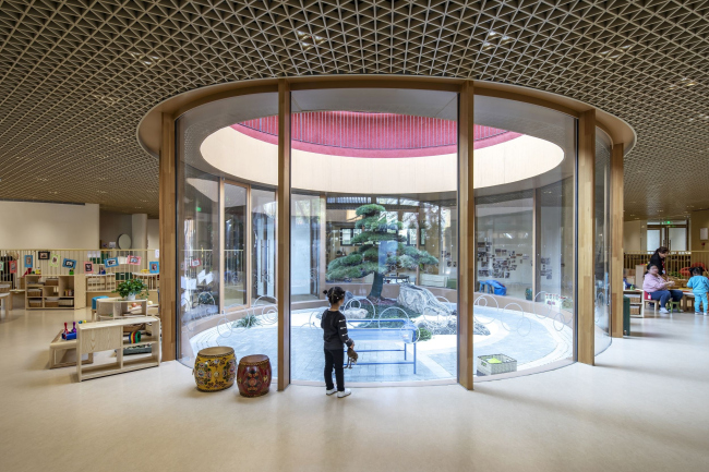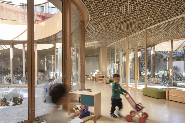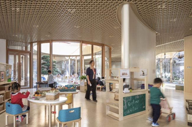 Архитекторы снесли новодельную усадьбу и вписали детский сад в свободное пространство вокруг исторического сыхэюаня; по словам архитекторов, их здание как будто держит его на ладони. Старое и новое сооружения составляют единый комплекс на 390 детей в возрасте от полутора до шести лет.