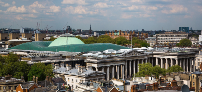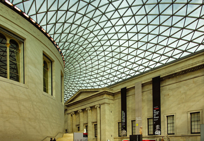 В декабре 2000 бюро Foster + Partners завершило реконструкцию внутреннего двора Британского музея, превратив его в самую большую крытую площадь Европы. С момента открытия двор посетили 113 млн человек, а его ажурная остекленная оболочка, кажется, стала популярнее самих экспонатов. Во всяком случае, в соцсетях она мелькает чаще, чем Розеттский камень или скульптуры Парфенона. Сегодня на территории 8000 м2 располагаются выставочные зоны, образовательный центр, магазины, рестораны и кафе.