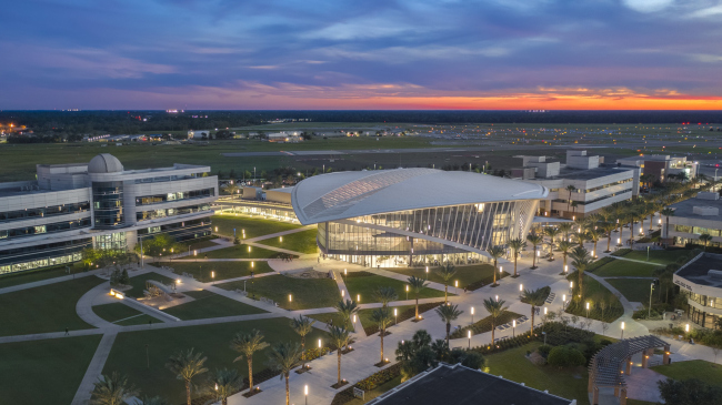Корпус Авиационного университета во Флориде по проекту ikon.5 architects – не просто студенческий центр, но еще и идеальная площадка для наблюдения за небом.