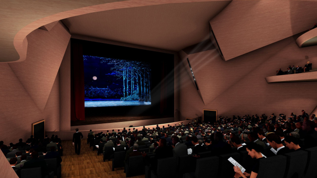 Функциональная программа здания такова: «облако» для зала на 950 зрителей (театр оперы и балета – филиал Мариинского театра), камерный зал в подиуме на 300 мест, два «кристалла» – для филиала Русского музея и для Кузбасского центра искусств с киноконцертным комплексом, а также фойе с рестораном и выставочными зонами на перекрытиях подиума – австрийские архитекторы планируют, что оно будет открыто в режиме 24/7 и станет важным для Кемерова всепогодным общественным пространством.